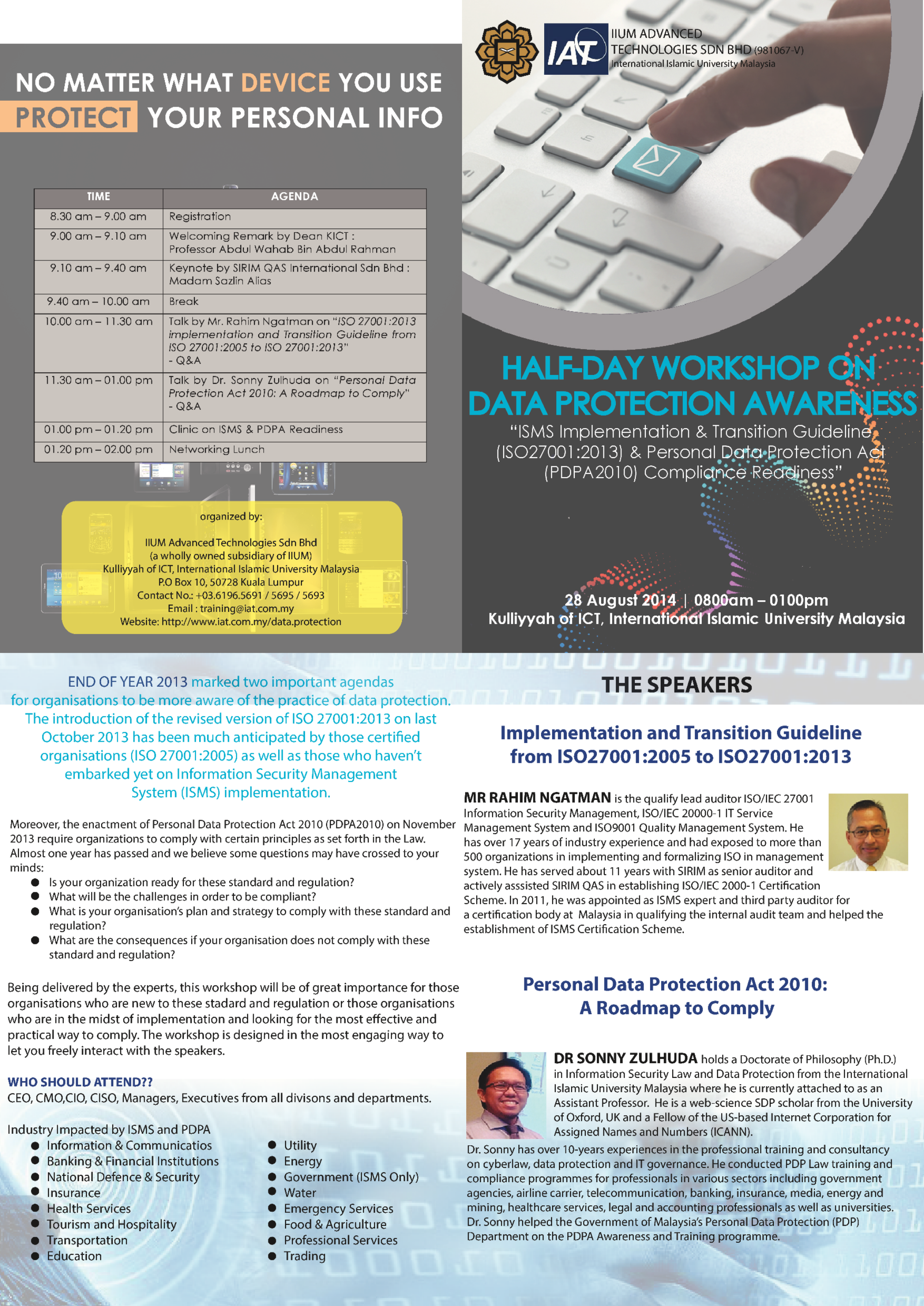 Therefore it is only right to regard that data security and privacy comes together. With this background, the IAT convened this workshop where I will speak too.