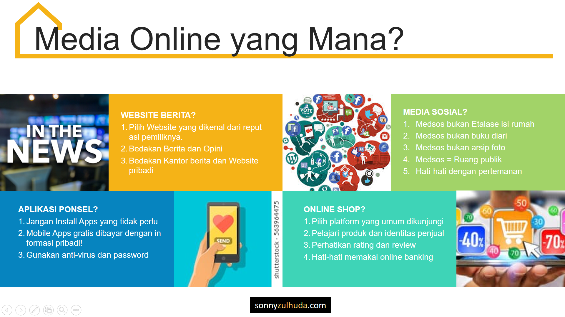 Di bagian berikutnya saya menjabarkan isu-isu yang lebih kontekstual terkait tantangan berinteraksi dengan media online, termasuk isu-isu etika dan hukum.
